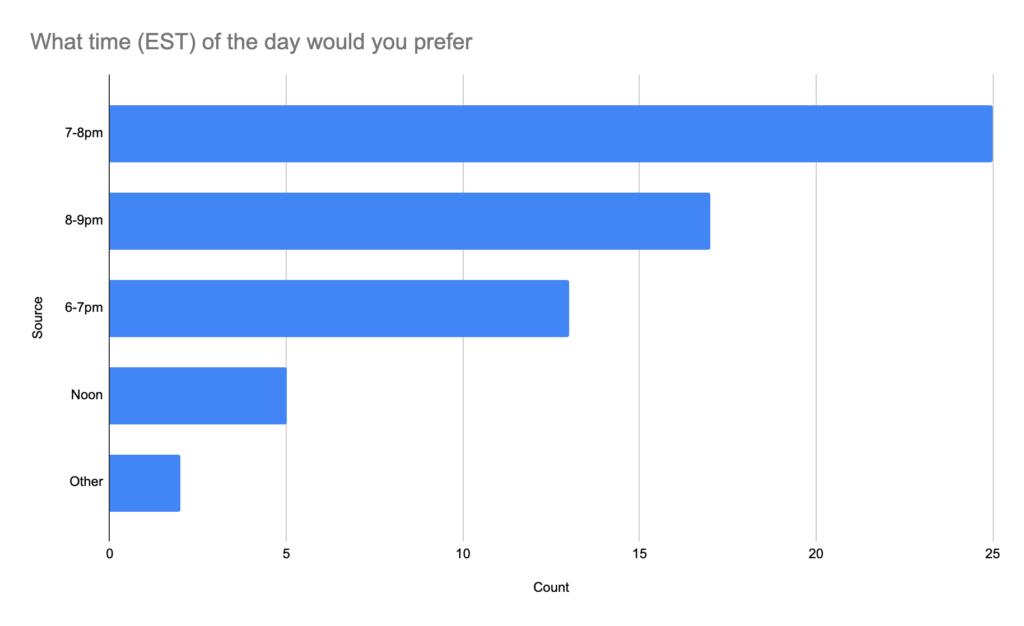 A big THANK YOU! to everyone who participated in our survey. Thank you for taking the time and effort to share your thoughts and ideas. We cannot improve, if we do not know what you want. The survey was sent to our email list, and also available on Facebook.