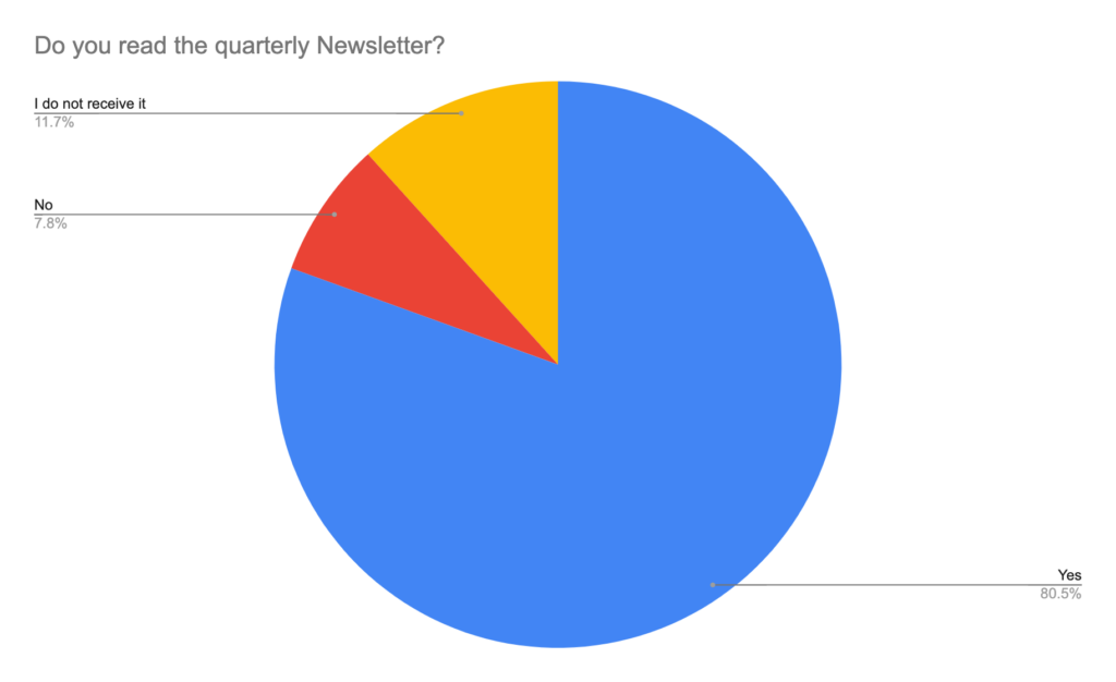 Thank you for your feedback, we appreciate your participation. Remember, if you have something that you would like to bring to the Board’s attention, you do not have to wait for the next survey. Contact any of our Board members and let us know what you like or do not like.